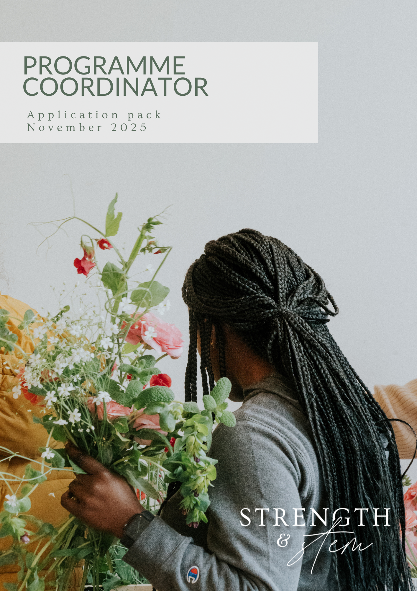 The Programme Coordinator plays a key operational role at the heart of Strength & Stem, ensuring the smooth delivery of our programmes and events. This includes coordinating a series of 12 weekly floristry and skills workshops, supporting the mentoring scheme, and organising independent events such as our annual graduation celebration, alumni gatherings and ad-hoc floristry workshops.